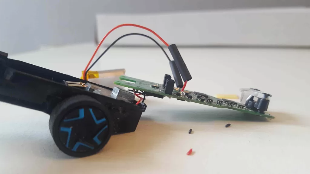 There are two ways of replacing the battery in an Anki Overdrive car, you can unsolder the old battery and then solder in a new one, or you can use my method of cutting the old battery off then joining the cables together.